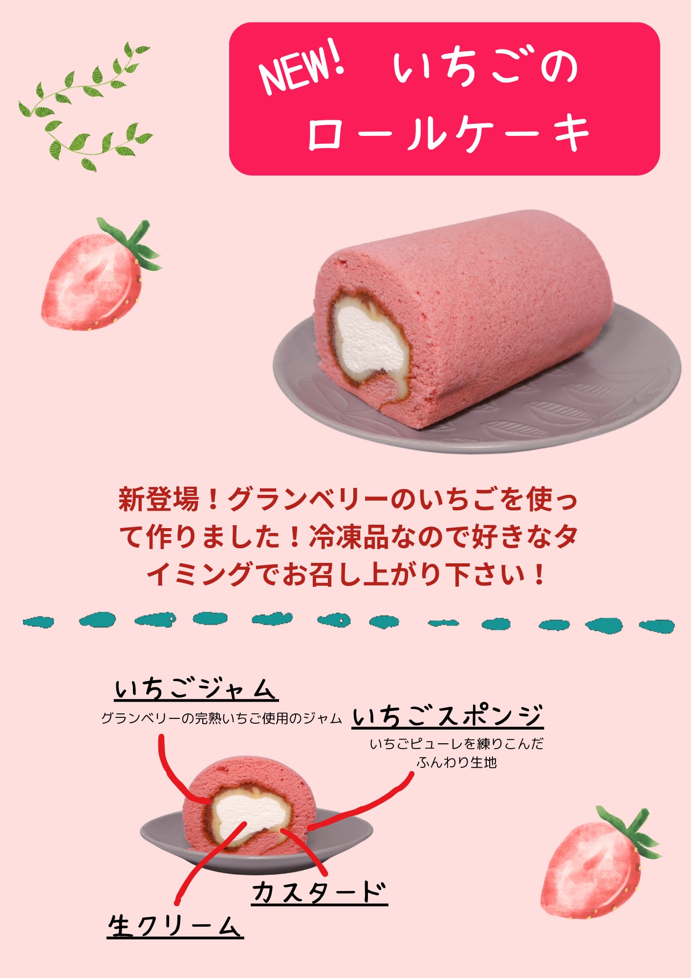 生地とジャムに大地のいちごをたっぷり使用したロールケーキです。